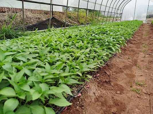 这次定植的辣椒种子品种于2021年3月1日播种,采用的是穴盘加育苗电热丝温床的方式,苗龄为45天。定植的辣椒类型有线椒、羊角椒、牛角椒、螺丝椒、美人椒、色素椒、灯笼椒等12个类型的辣椒;此次定植的总面积为二十多亩地。辣椒品比品种还是采用露地加大棚二次重复的方式进行定植。